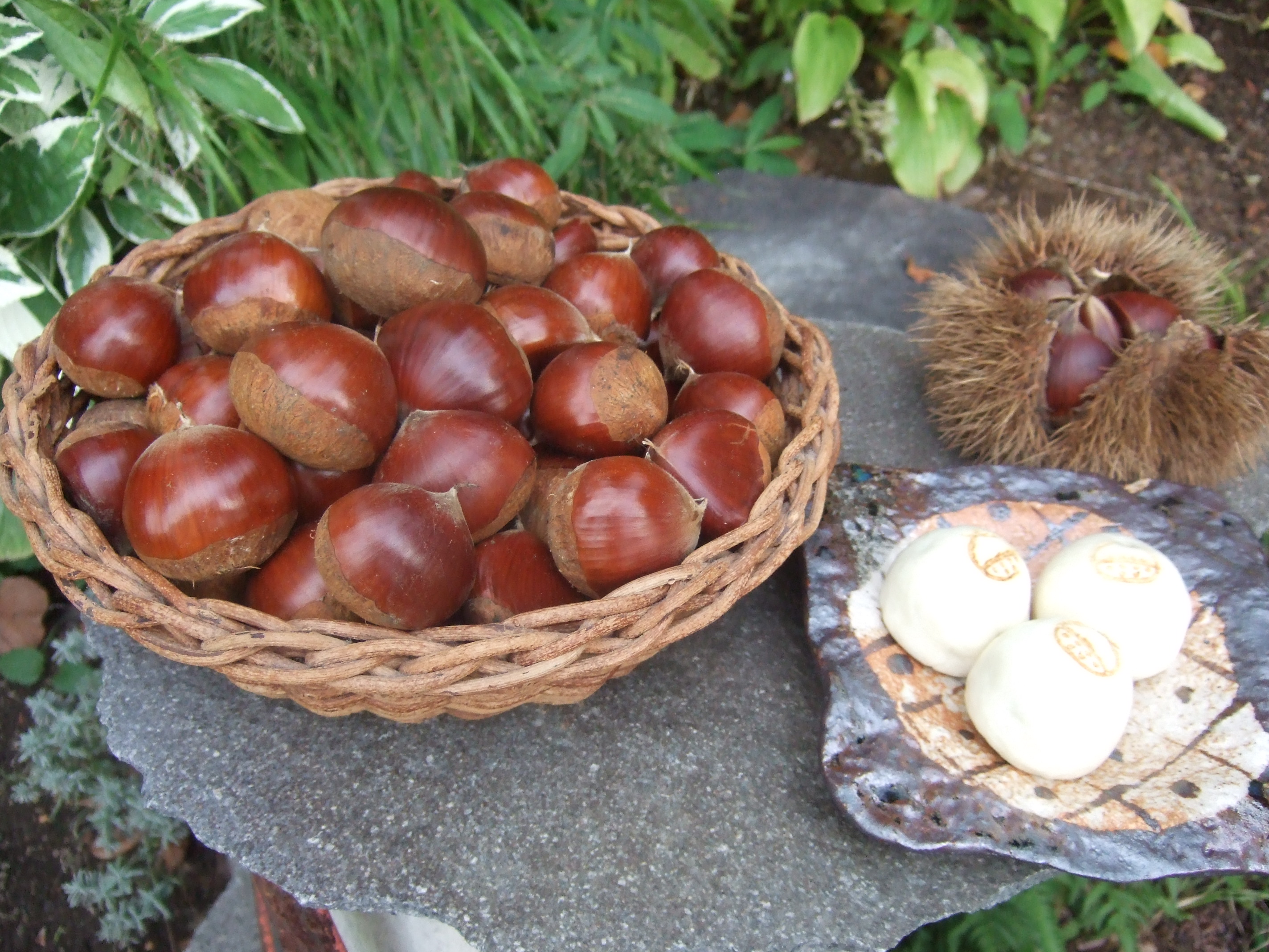 2025.10.19 お菓子 秋も深まりました。見事な小布施の栗です。 美味しい栗での菓子作り楽しんでいます。今年も旧小田切家住宅の喫茶で扱っていただいています。 ふじ林檎も、後一か月程で収穫になります。